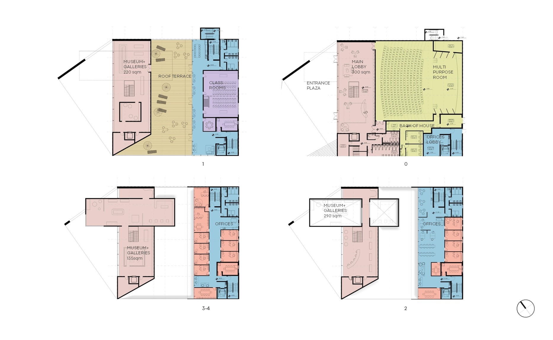 One of the benefits of this design is its simplicity, which has important implications for the budget. The structure requires no expensive engineering lugs or spatial shells and clearly communicates its content without any need for excessive embellishment. Furthermore, the building meets the area requirements outlined in the program, coming in at 3,100 square meters.