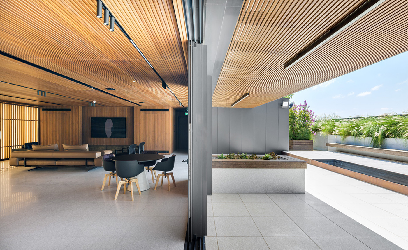 עיצוב משרדים בקומת גג עבור יזם שחיפש מקום עבודה ביתי שבו יוכל לערוך פגישות ולארח