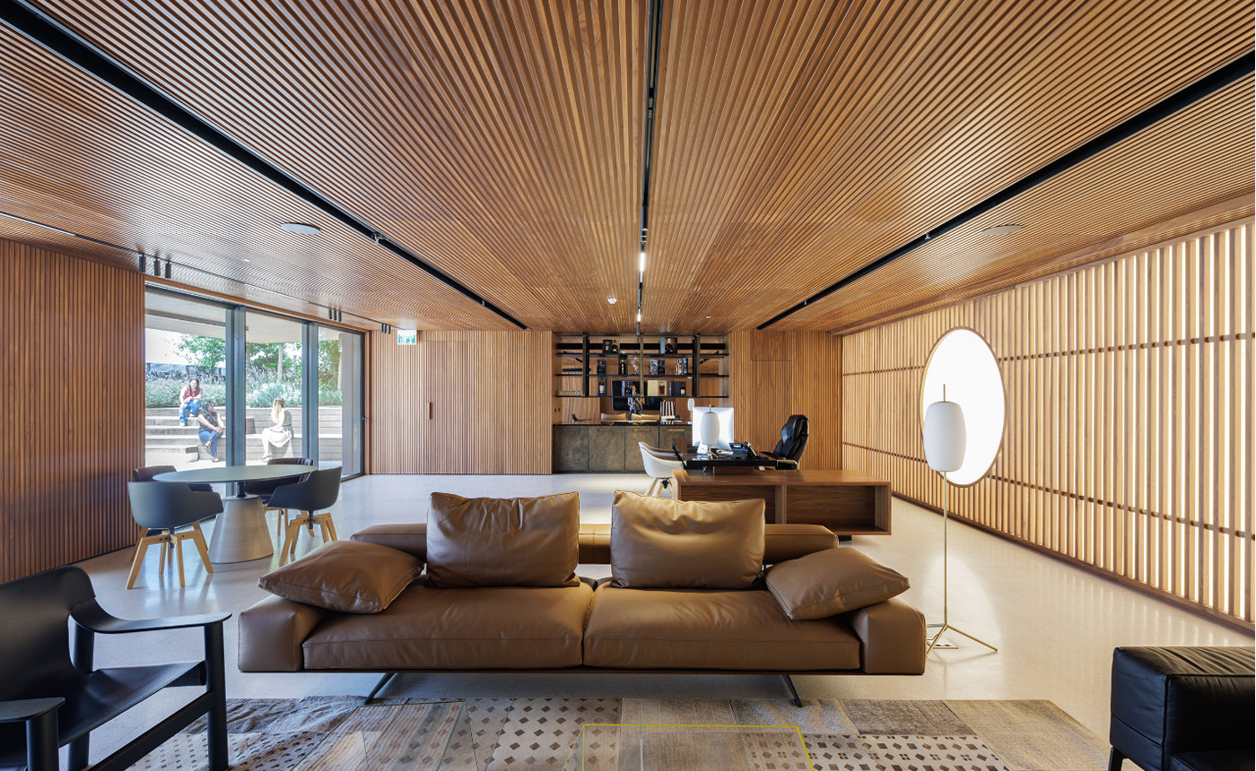 המשרד תוכנן כלופט מודרני קליפורני שמשדר יוקרה, חמימות, עיצוב על זמני ומטשטש את הגבולות בין הפנים לחוץ. לצורך כך קירות המעטפת הקיימים הותאמו לצרכים החדשים. האחד נפתח אל המרפסת שבה תוכננה גינה רחבת היקף במספר מפלסים ובריכת שיקוף והציף את החלל באור טבעי. הגגון תוכנן בצורה שמאפשרת המשך ויזואלי של תקרת המשרד ומרחיבה אותו. והשני הואר בתאורה רכה באמצעות בריסול והסתיר את הפתחים שלא תאמו לשימוש החדש. המשרד תוכנן לאפשר תרחישי אירוח שונים כולל אזור א-פורמאלי ובר.