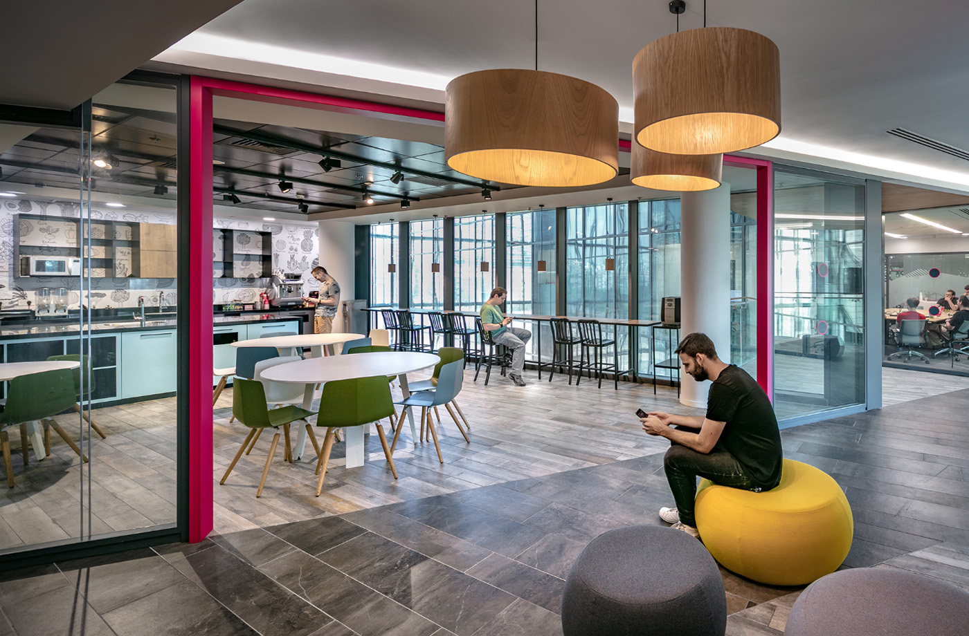 העיצוב התמקד ברווחת העובדים, וכולל עמדות עבודה מודולריות מותאמות אישית בטכנולוגיה מתקדמת, הניתנות להתאמה לדרישות הספציפיות של העובד. שמרנו על סביבת עבודה יעילה, ומקסמנו את החשיפה לאור שמש טבעי ולנוף. בהתאם לחזון החדש של צ'ק פוינט, תוכניות הקומה עוצבו מחדש ממשרדים סגורים לחלל פתוח, עם תוספת של מרחבים שיתופיים למפגשים פורמליים ובלתי פורמליים.