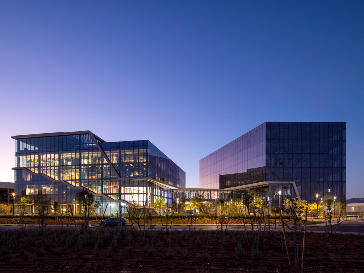 המגרש הפינתי, החובק שטח פרטי פתוח, יחד עם דרישות התב"ע לקווי בניין מחייבים בשתי חזיתות הרחוב ו"קו בניין אפס" עם המגרש השכן, הביאו אותנו לפתרון ייחודי. למבנה הקובייתי בן 9 הקומות בעל גריד הקורות והעמודים שחופו אבן אפורה בצירוף זכוכיות, המשדר עיצוב נקי ועל-זמני, צורף אגף דו-קומתי מחופה בלוחות HPL במראה עץ ,המעניק קנה מידה אינטימי כלפי הרחוב והשפ"פ. החומריות חוזרת על עצמה בחלקה העליון של הקובייה, ומדגישה את החלל הכפול של קומת המשרדים העליונה.