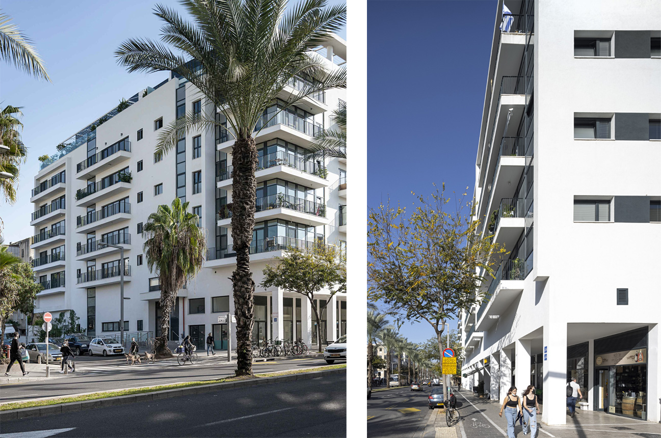 השפה האדריכלית של המבנה מתאפיינת בקווים אופקיים ישרים ואלגנטיים המלווים את החזית הראשית ושימוש בחומריות ואלמנטים ברוח אדריכלות "העיר הלבנה" והאקלים הארץ ישראלי– טיח לבן, מרפסות עם מעקות ברזל, וא-סימטריות המתמודדת עם חזית משמעותית וארוכה הפונה לרחוב. קומת הגג נמצאת בנסיגה ומאופיינת ע"י קרניז גג מרחף שמצל על מרפסת גדולה העוטפת את הדירות. הנסיגה מאפשרת גם מרפסות גדולות ונדיבות שבשילוב קירות זכוכית מספקות מבט פנורמי מדהים על העיר.