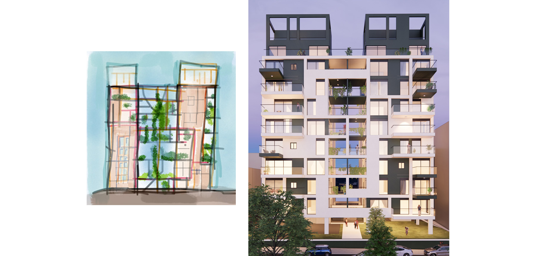התכנון האדריכלי משדר אלגנטיות ומקוריות. המרפסות הגדולות וחומרי הגמר האיכותיים מייצרים אוביקט על זמני שכולו שיר הלל לאדריכלות הלבנה בישראל. הפרויקט משקף את הפילוסופיה של חברת קטה יזמות החותרת למצוינות.