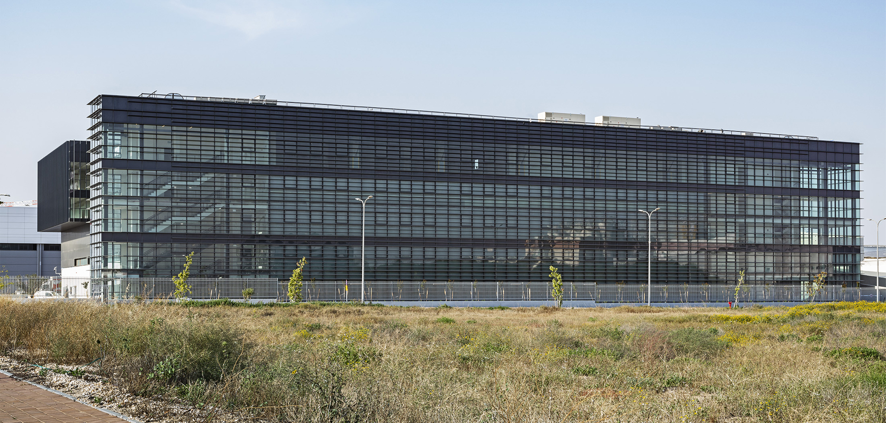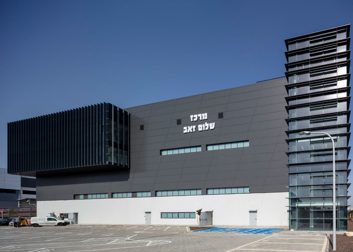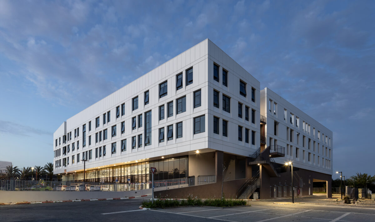 מבנה בעל חזית נקיה ומעוצבת המשלב מחסן תפעולי ומשרדים